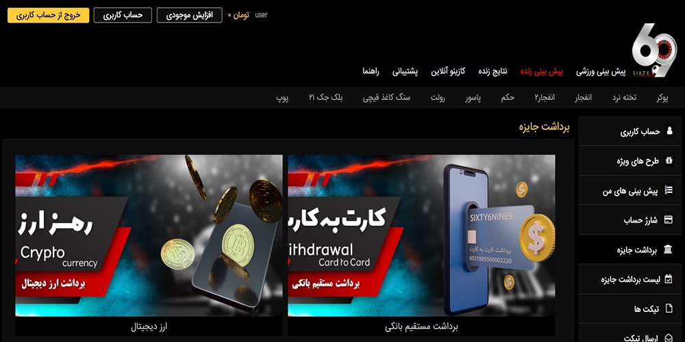 در سایت شرط بندی 69 بت، برای برداشت جوایز برنده شده، دو گزینه بسیار جذاب در دسترس کاربران قرار گرفته است: